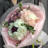 Ищете что-то особенное и нестандартное? Этот авторский букет ломает стереотипы. Флористы создали удивительную иллюзию — крупные, объемные соцветия, напоминающие гигантские ромашки, собраны из стойких и фактурных гвоздик. Игра контрастов — насыщенный фиолетовый, пастельный розовый и классический белый — притягивает взгляд. Россыпь нежного ваксфлауэра и веточки эвкалипта придают букету динамику и свежесть. Стильный подарок для тех, кто ценит креативный подход и современную флористику.